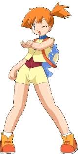 Misty é uma lider de ginasio da cidade de celulean na região de kanto mysti foi a primeira companheira de viagem do ash ela acabou conhecendo ash quando acidentalmente misty pesca pikachu e ash no rio quando tentava pescar um pokemon de água. Após esse icidente ash pega a bicicleta de misty emprestada para fugir dos pokemons spearows selvagens acidentalmente a bicicleta de mysti foi destruida pelo choque do trovão do pikachu misty então decidi viajar com ash ate que ele pague uma nova bicicleta. No final da 5 temporada misty da da adeus no episodio (a gente se ve depois) misty revela sentir algo a mais forte pelo ash apos ganhar sua bicicleta nova em jotho misty volta para a cidade de celulean e reassume o ginasio de celulean por isso era futuramnete nao aparece nas temporadas seguintes ela faz pequenas apariçoes em hoenn depois disso.